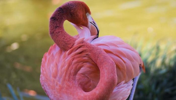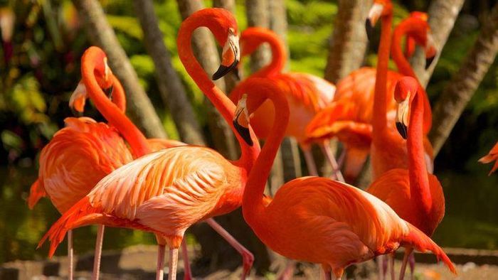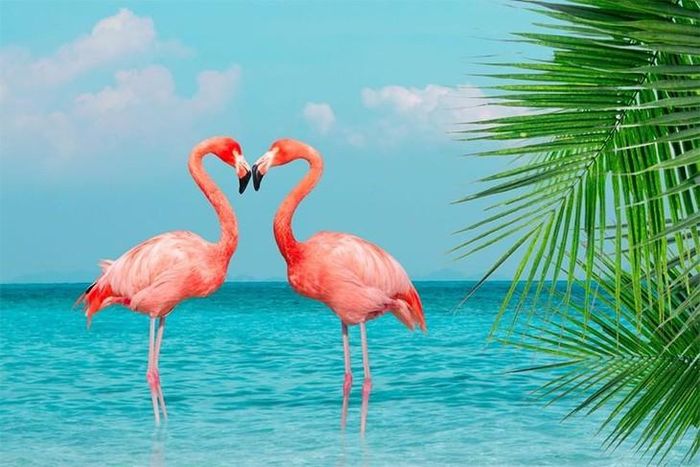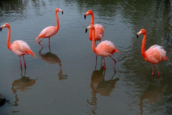 When newly born, flamingos have white feathers. The color of flamingo feathers later depends on the food source where they live, ranging from light pink to bright pink or deep red. Pigments in the shrimp species in Yucatan, where these flamingos live, give their feathers colors like coral reefs.