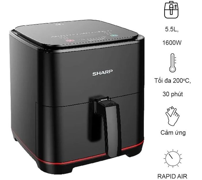 The Sharp KF-AF70EV-ST has a total capacity of 7 liters, with a usable capacity of 5.5 liters, catering well to the needs of 5 – 7 people. Therefore, it is easy to use for frying whole chickens, large pork ribs, serving family meals, or intimate party gatherings. The Sharp KF-AF70EV-ST facilitates quick and delicious frying thanks to its powerful 1650W operation and Rapid Air technology.