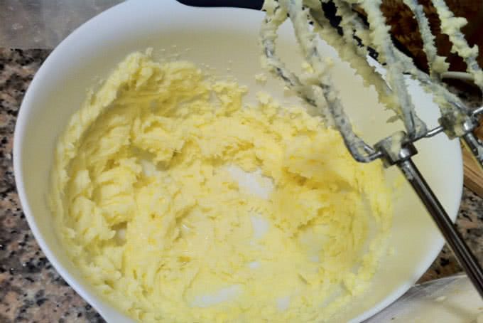 - Gradually add the eggs to the butter, beat until fluffy.