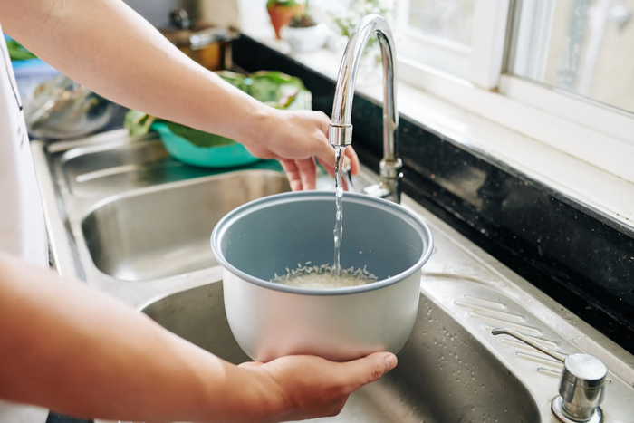 Apart from washing your face with rice water correctly, you need to ensure hygiene during the rice water filtering process to avoid bacterial contamination, which can harm the skin. In addition to using clean water, the utensils used for rinsing rice, such as buckets, glass bowls, and strainers, also need to be thoroughly cleaned. Also, remember to wash your hands thoroughly before rinsing the rice!