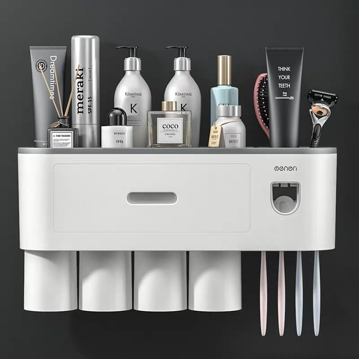 The OENON Automatic Toothpaste Dispenser Bathroom Shelf has the capability to hold items like toothpaste, toothbrushes, soap, or towels, optimizing your bathroom space. Additionally, the product's simple and elegant design will make your bathroom more organized and convenient.
