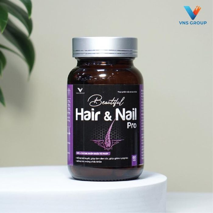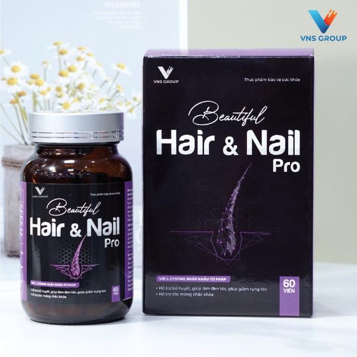 Beautiful Hair & Nail Pro Supplements from VNS Group, originating from Vietnam, are designed to support blood nourishment, darken hair, strengthen nails, and reduce hair loss. This product is suitable for those who need to care for their hair and nails.
