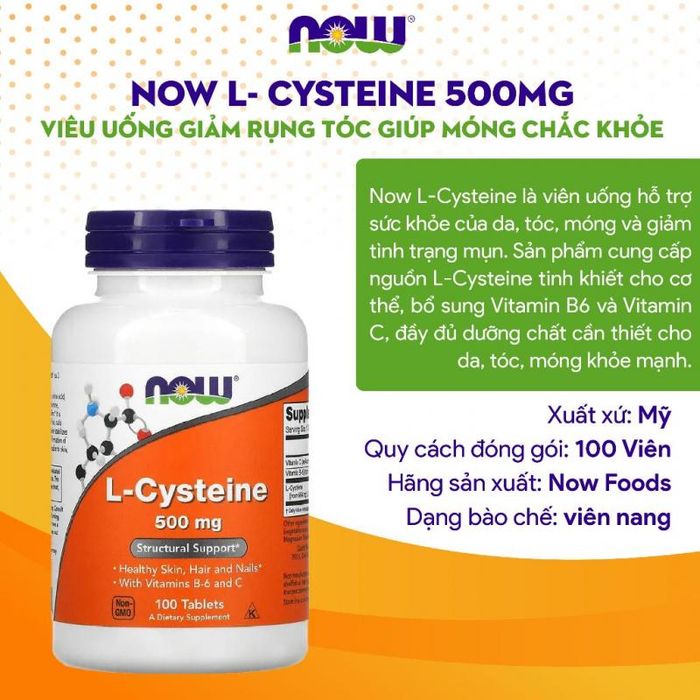 Now L-Cysteine Supplements are skin, hair, and nail support products from the USA. The product provides pure L-Cysteine for the body, supplements Vitamin B6 and Vitamin C, complete with essential nutrients for healthy skin, hair, and nails.
