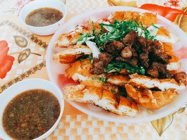 Grilled bread here comes in many types, with or without fillings. The bread goes through two stages of grilling, first with cooking oil and then with a mixture of oyster sauce and honey to give the bread a deep golden color and delicious aroma. In addition, the dipping sauce for grilled bread is also prepared with a unique combination of spicy chili, sweet sugar, sour kumquat, and the fragrance of tangerine peel. Dipping a crispy piece of grilled bread into a bowl of flavorful sauce, one can easily eat 2 - 3 pieces or even more if still hungry. Grilled bread in Lang Son is priced from 3k to 10k per piece, depending on whether it has fillings or not.