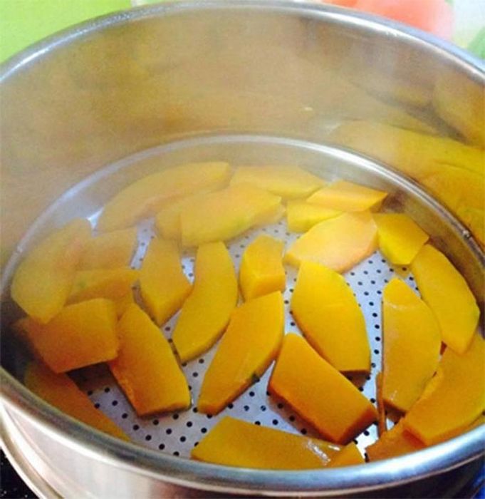 Red Pumpkin Cake has red pumpkin and glutinous rice flour as its main ingredients. In addition, depending on the taste of each region, red pumpkin cake may have mung bean filling to enhance the delicious and fragrant flavor. Making red pumpkin cake is quite simple. Red pumpkin is peeled, steamed until cooked, mashed, and kneaded with glutinous rice flour. The longer you knead, the softer, more elastic, and more delicious the cake becomes. Then, take a handful of dough, wrap it with banana leaves or dong leaves, and steam the cake. Lang Son's red pumpkin cake is not only attractive with its eye-catching golden appearance but also very delicious with the cool sweet taste of red pumpkin, making you feel the rich and creamy flavor of mung beans.