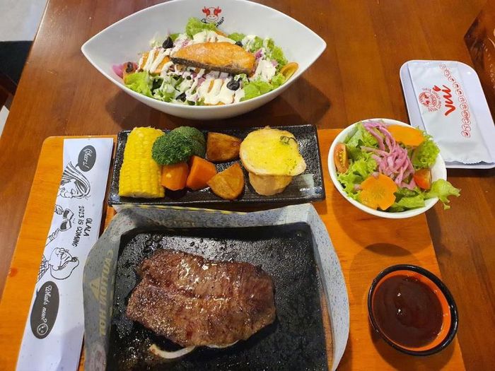 Easy to locate, the restaurant offers a refreshing atmosphere. The diverse menu ensures delicious, well-balanced, and distinct flavors. Despite the upscale service, the prices are surprisingly student-friendly. The menu can be overwhelming at first glance, but the tender beef bít tết, not overly cooked, with rich and savory sauce is a standout. Don't hesitate, visit Bò+ Beefsteak and indulge now.