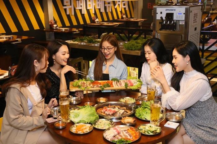 BeatBox Bistro is considered the first restaurant to serve Korean-style pub dishes in Vietnam. At BeatBox Bistro Aeon Mall Long Bien, diners can indulge in authentic Kimchi-flavored snacks such as spicy chicken feet, grilled pig skin, five-organ grilled blanket, cheese rolled fried chicken, enticing grilled hot pot dishes, and enjoy Soju or delicious Makgoli rice wine.