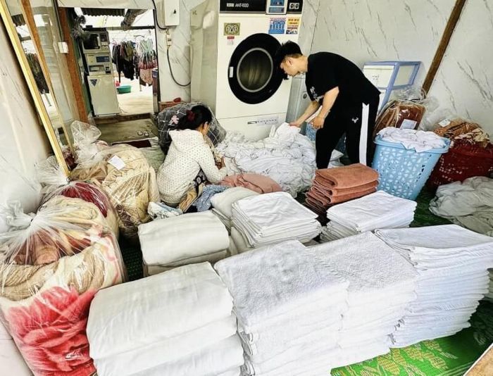 Dalat Laundry has spacious drying areas capable of drying various types of items simultaneously. Before delivering to customers, the staff thoroughly checks the quantity, neatly folds, and places them in packaging. The store also provides laundry services for hotel items, ensuring separate washing to avoid mixing. Dalat Laundry uses 6 specialized chemicals for hotels, preserving fragrance, effective bacteria elimination, and ensuring cleanliness at all times. Additionally, Dalat Laundry offers free home delivery for customers who are far away or those who lack time to bring their items to the store.