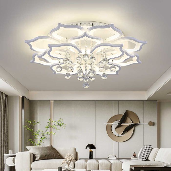 For a modern living room, opt for lights with simple and elegant designs, featuring bright colors such as LED lights, ceiling lights, pendant lights, etc. These lights will help create a luxurious, modern, and spacious living room.