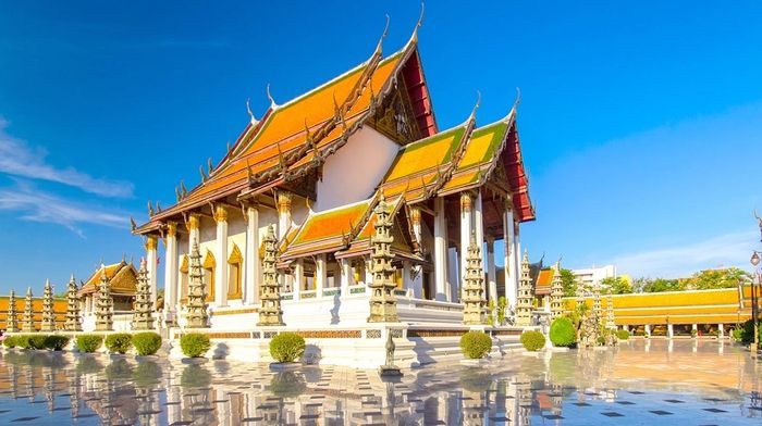 Wat Suthat, officially known as Wat Suthat Thepwararam, is one of the largest temples in Thailand and houses the most gold Buddha statues, always listed among the most fascinating destinations on popular Thailand tours.