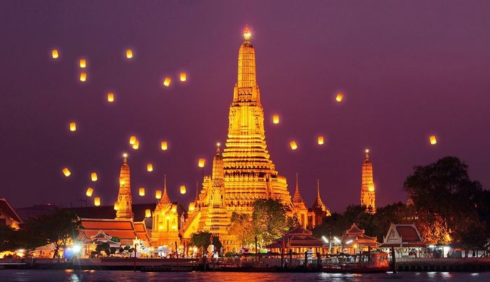 If there's a title for the most romantic temple in Thailand, it's likely Wat Arun. Also known as the Temple of Dawn, Wat Arun sits majestically on the banks of the Chao Phraya River. Despite its name, Wat Arun exudes its most romantic and mystical charm at night. In the darkness, the temple stands out with its central tower soaring 80 meters high, surrounded by four shorter towers. The temple showcases a blend of Khmer architecture and intricate porcelain decorations imported from China. When touring Thailand, don't miss the chance to visit and stand on the temple's balcony to admire the serene beauty of the Chao Phraya River.