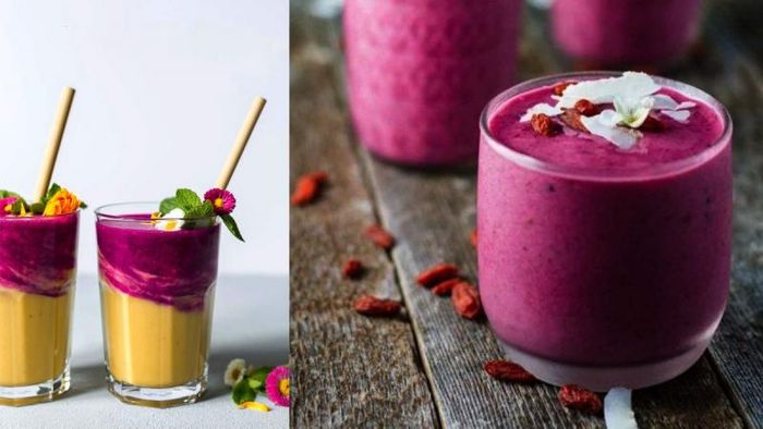 With these simple steps, you have a refreshing smoothie with the fresh flavors of dragon fruit, mango, and jackfruit, combined with the creamy aroma of coconut milk. Enjoy this visually appealing and refreshing drink.