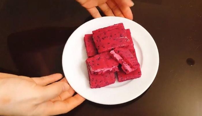 Indulge in the decadent pleasure of dragon fruit ice cream sandwich.