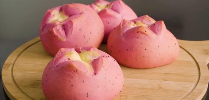 Delight in the innovation of dragon fruit bread, a creation born amidst the COVID-19 pandemic to support local farmers. This unique bread utilizes a blend of dragon fruit puree instead of water to produce a vibrant pink crust.