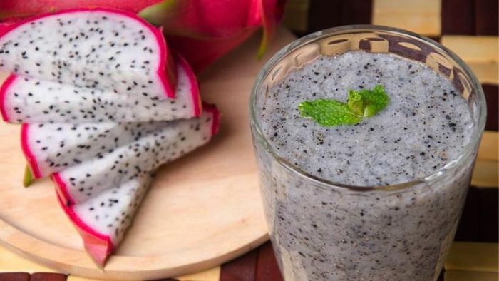 Red dragon fruit smoothie with chia seeds