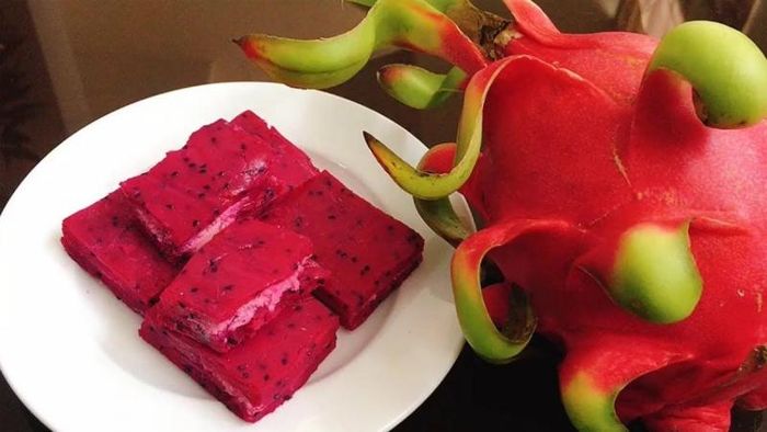 - The coconut-rolled red dragon fruit cake is soft, fragrant, and surely will delight sweet lovers. On hot summer days, this chilled dragon fruit cake melts refreshingly.