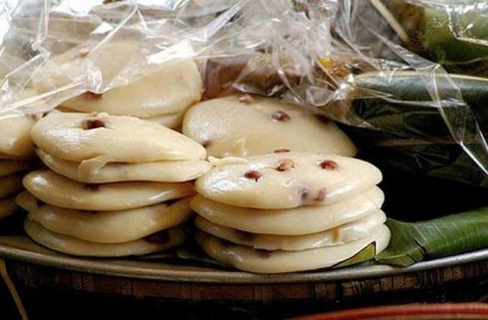 The filling of Diem village sticky rice cakes bears resemblance to banh chung, with mashed green beans, fragrant pepper, finely sliced pork belly, and a touch of minced pork fat mixed with green beans to enhance the rich flavor.