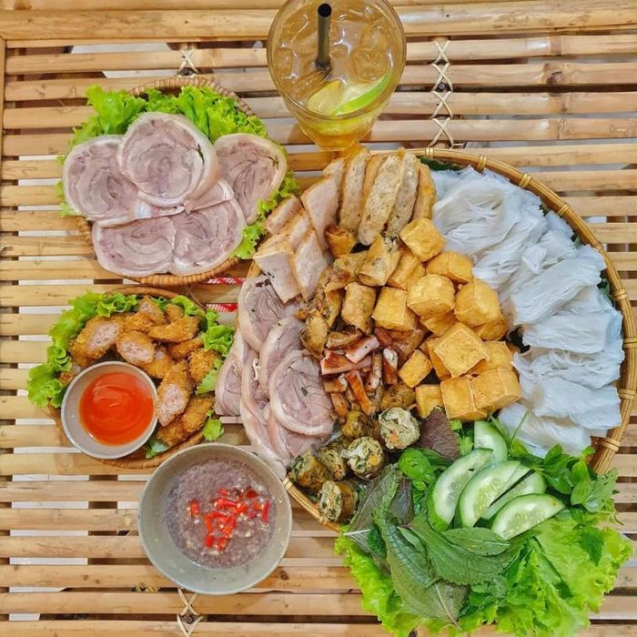 Experience the renowned dishes of Bún Đậu Mắm Tôm Nha Trang - Mẹt Quán, complete with a variety of delicious ingredients.