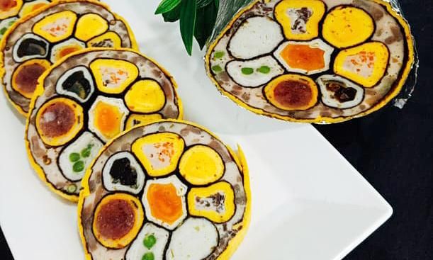 In addition, the product is supplemented with carrots, mushrooms... to provide vitamins and minerals for people with high blood pressure. The product is wrapped outside by a layer of fried duck eggs, so it looks very beautiful. With the rich use of various ingredients in the product rainbow gio provides many essential nutrients for humans, especially the amino acids found in meat, eggs, and suitable tubers for all ages. Gio is a traditional dish very popular in the Vietnamese meal. And if you are already familiar with everyday gio dishes like sausage, beef hash, you can switch to rainbow gio for the upcoming traditional Tet day.