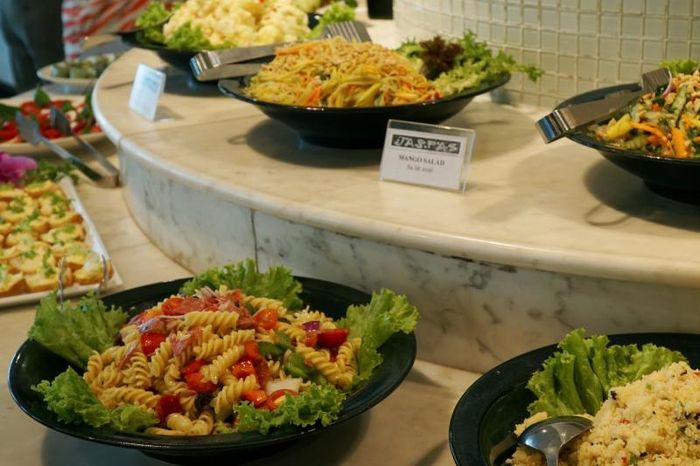 Jaspas Hanoi presents a menu of exquisite dishes, sure to tantalize your taste buds. Indulge in their buffet featuring over 30 delectable items, ranging from succulent grilled beef to salads, pizzas, Italian pasta, fresh vegetables, hot European and Asian specialties, baked seafood with cheese, Mexican chicken-filled pastries, grilled chicken with lime leaves, garlic butter shrimp, and delightful desserts including fruits, caramel, and assorted pastries. All this awaits you at the Jaspas buffet. Come with friends and experience it today!