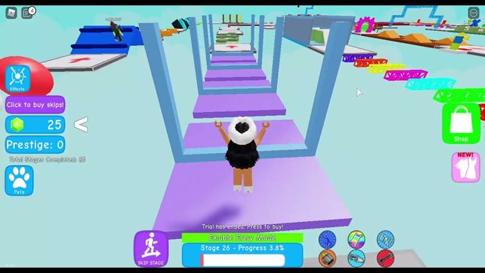 Ranked among the top multiplayer games in Roblox is Mega Easy Obby, an engaging role-playing game with various levels ranging from easy to difficult. Each level presents different challenges, requiring you to utilize your 'parkour' skills to overcome them. Moreover, the game offers players the feature of owning companions as pets, accompanying them through every challenge.