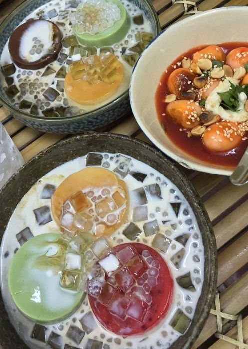 Similar to the snack area in Ngo Gia Tu apartment building, at An Quang apartment building has also formed a renowned snack area, thanks to reviewers visiting and sharing. This place is also the origin of famous desserts such as seven-color jelly flan, Thai tomyum vermicelli, mixed noodles with fat toppings, etc. These are all dishes beloved by many customers, especially teenagers.