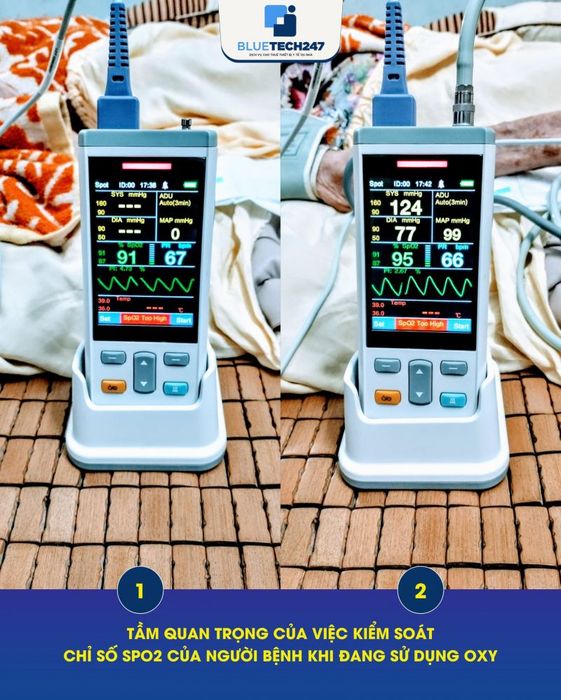 Bluetech247 offers various products such as HT50 breathing machines, balloon-squeezing ventilators, 03L - 05L - 10L oxygen generators, 01-bottle suction machines, Terumo electric syringe pumps, Omron respiratory gas machines, 4TS monitors, SpO2 index measuring devices, and more.