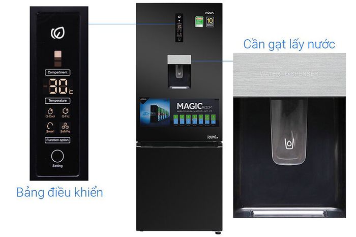 Next up is a stellar product from the Aqua brand, the AQR-IW338EB (BS) model with a capacity of 288 liters. Dubbed as a masterpiece, despite its size under 300 liters, it encompasses almost all desired features such as a modern bottom freezer design, convenient external control panel and water dispenser, equipped with Magic Room conversion compartment, multi-dimensional cooling technology for optimal preservation, energy-saving inverter technology, and toughened glass shelf.