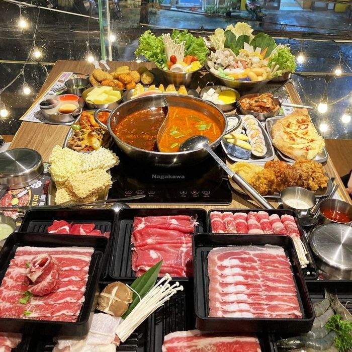 Every day, 3 BiG - Grill & Hotpot is bustling with customers, indicating the excellent food quality and service here. Located on a main road, the restaurant is easy to find. Upon entering, you'll feel the elegance and warmth in every detail. The restaurant uses modern grills that emit minimal smoke, ensuring a pleasant dining environment without strong odors. Despite the crowd, the food variety is always abundant. The dishes are always fresh and plentiful, satisfying every diner. The dipping sauces are diverse and complement the meats and seafood, creating rich and harmonious flavors.