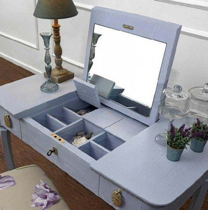 For smaller spaces, consider a compact, floor-sitting mini vanity table.
