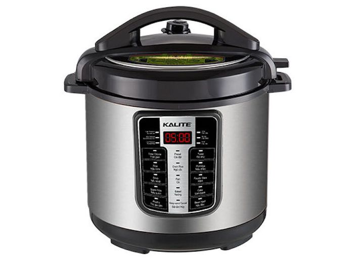 Kalite KPC5841 features a silver and black elegant design. The cooker body is made of high-shine stainless steel, durable, and strong. The pot rim and base are made from premium virgin plastic. The control panel displays all functions in bilingual Vietnamese + English with easy-to-use electronic buttons.
