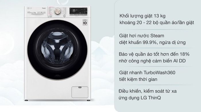 Finally, a 13kg washing machine model priced at 15 million VND, featuring a direct drive motor that justifies its cost. In the highest price range within its segment, you can rest assured that the quality of this LG AI washing machine is top-notch. However, the slightly high price point may be a drawback for this product.