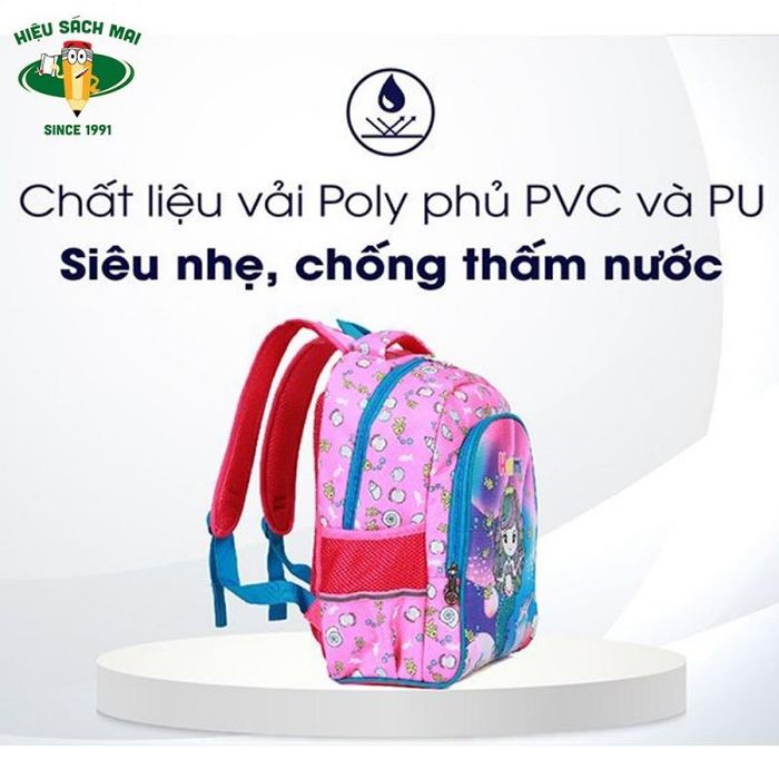 Back support backpacks from Vietnamese brands are designed with a balanced standing box shape, compact, hugging the back closely, preventing the backpack from tilting or swinging when kids move, run, or jump in class, minimizing impact on the bones and spine. The backpack is made from premium Poly Oxford fabric coated with super lightweight PVC and PU, providing excellent water resistance and dust repellency. The back cushion is made of thick foam, reinforced with a breathable mesh layer, sweat-absorbent, and extremely comfortable to wear.