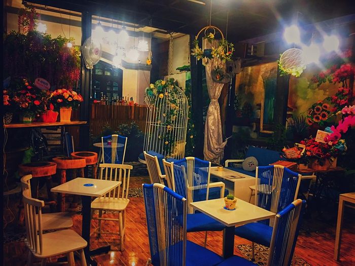 If you're seeking a serene, cool, and comfortable spot to relax and chat with friends, then Senorita is the ideal rendezvous. With a refreshing green color blending harmoniously with nature, the cafe gives the feeling of stepping into a small enchanted forest. Open the doors inside, and you'll be amazed by the dreamy atmosphere filled with thousands of flowers.