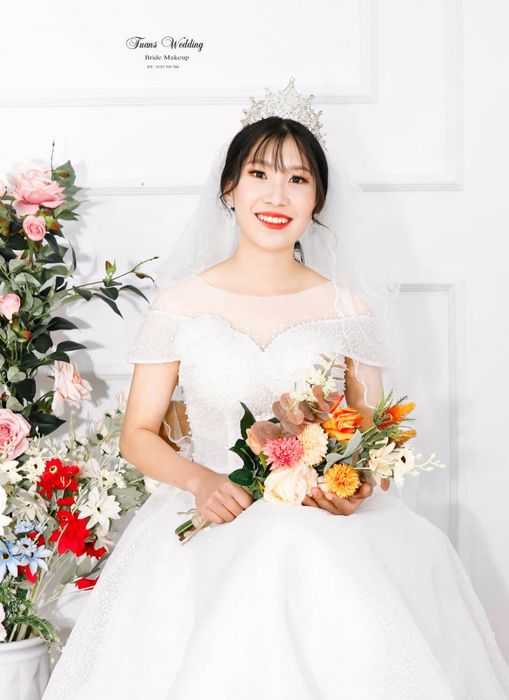 This year, the trend of light, natural makeup continues to reign. Along with that, colors like pink, pearl white, antique gold, and more will help young brides exude a youthful, natural, fashionable, and extremely dazzling look. Grasping this trend, Nhat Wedding always knows how to transform to make brides truly stand out with the most natural beauty. A guest joked that Tuyến Siro Make Up has a special talent, creating many magical transformations in the beauty of brides thanks to her super skillful makeup techniques. Indeed, you will be surprised to see a girl with many facial imperfections such as acne, freckles, round face, etc., but when touched by the magical hands of Tuyến Siro Make Up, everything changes 360 degrees, becoming a true angel, still her but elevated beauty, shining radiantly.