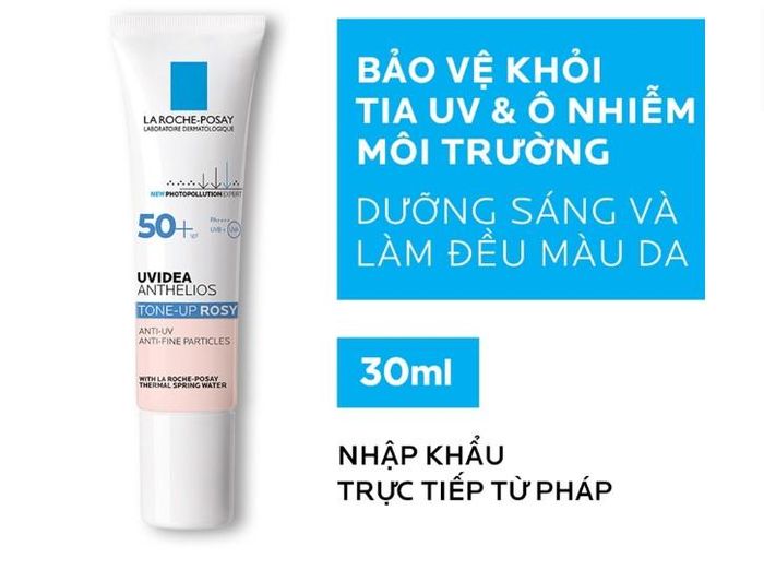 La Roche Posay Uvidea Anthelios Tone-Up Rosy SPF50+ sunscreen provides comprehensive protection against environmental factors while acting as a makeup primer for radiant, fresh, and glowing skin.