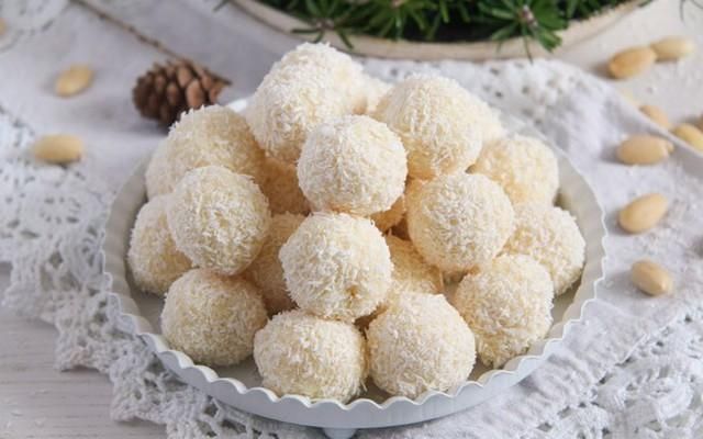- Bước 1: Trộn đều dừa nạo và sữa đặc có đường vào một bát lớn. Sau khi trộn thật đều ta vo tròn hộn hợp thành những viên tròn và nhét một hạt hạnh nhân vào trong.