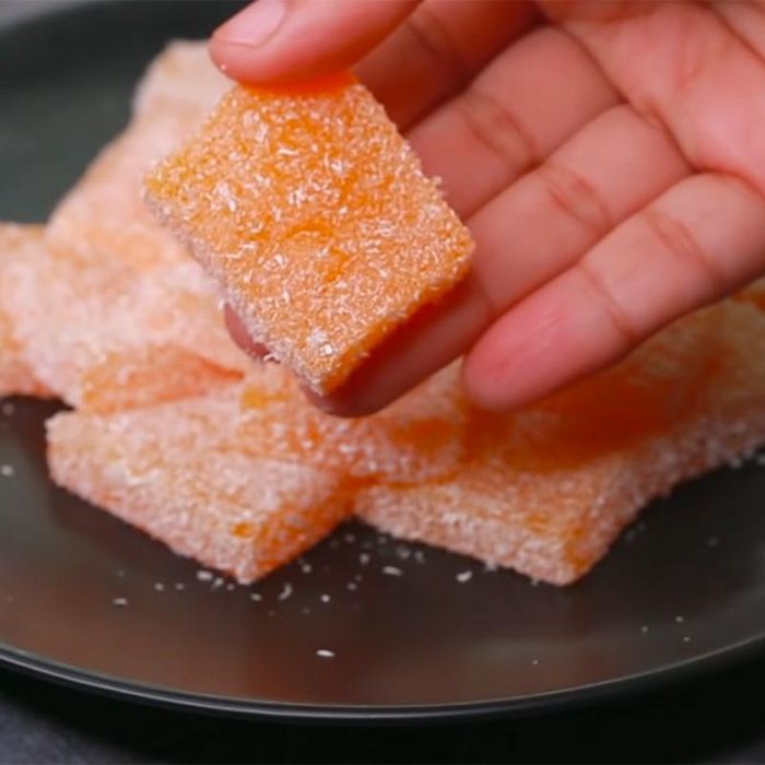 - Bước 3: Đổ hỗn hợp kẹo vừa đun này vào khay, đợi cho nguội thì cho vào ngăn mát tủ lạnh khoảng 3-4 tiếng.