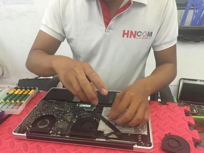Macbook repair is also considered a strength of HNCOM. With modern machinery, state-of-the-art equipment, and skilled technicians, HNCOM ensures a very high success rate for customers. Similar to laptop repair, the Macbook repair process is conducted transparently under the customer's observation. ''Reliable and affordable Macbook repair in Hanoi with reasonable prices and genuine components'' is the feedback from customers who have used HNCOM's services.