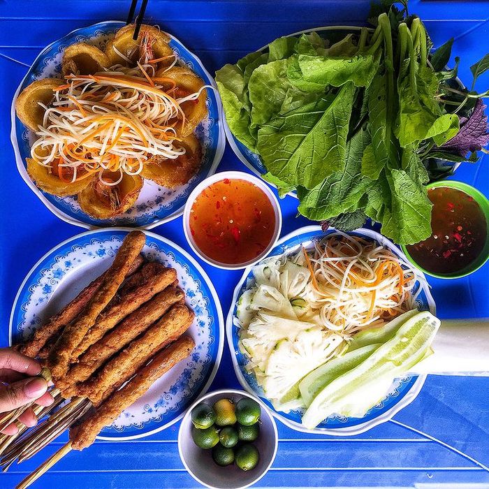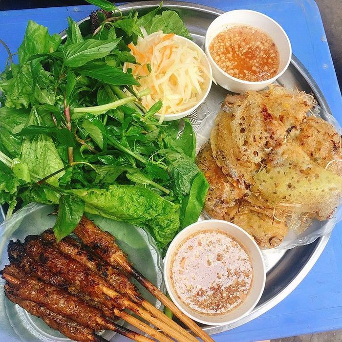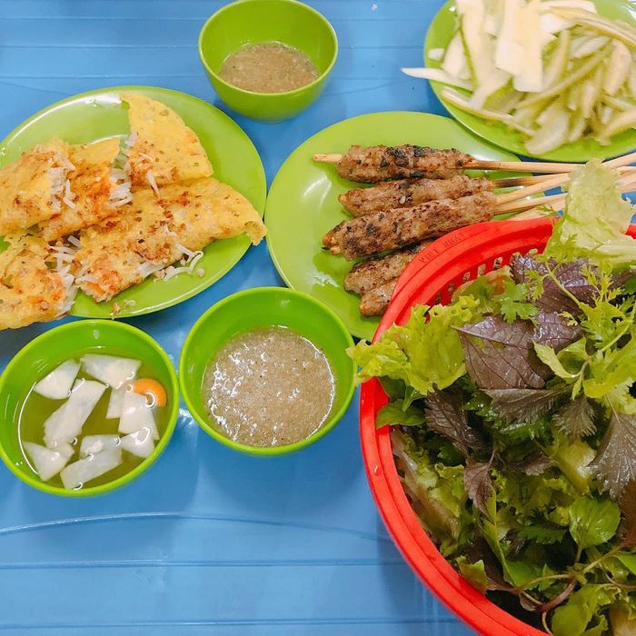 Nestled in a small alley off Nguyen Khuyen Street, the Da Nang bánh xèo spot boasts a spacious environment. The simple yet neatly arranged tables and chairs create a clean and tidy ambiance. This place specializes in Central Vietnamese cuisine, offering delicacies such as bánh khọt, grilled meat, spring rolls, and bánh xèo.
