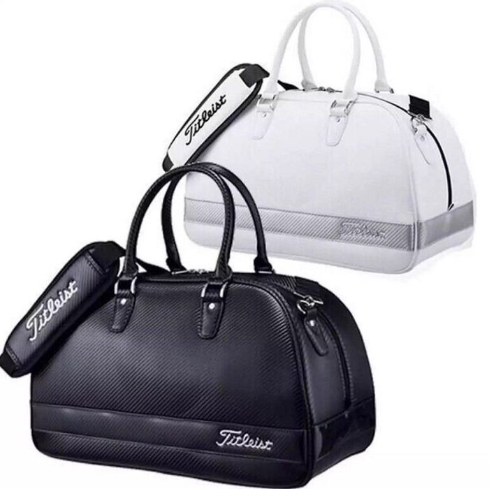 – The hand-carry golf bag Titleist Casual Boston Bag 2016 TA6BB631-4 is made from high-quality synthetic leather PU, providing not only high durability and water resistance but also an elegant and luxurious appearance for users.