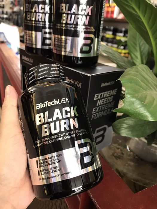 - When you use Black Burn BiotechUSA Fat Burning Support Pills, it will help optimize fat metabolism. Among the active ingredients of Black Burn, choline and zinc contribute to the fat metabolism process.