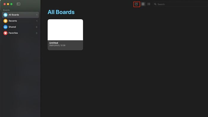 Step 2: After opening the Freeform app, to create a new note page, simply click on the icon located in the top right corner as shown below.