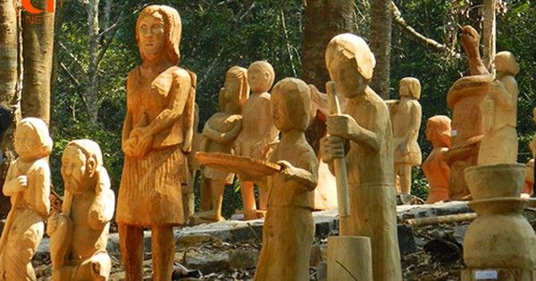 As travelers journey towards the Pa Sy waterfall, they also get the chance to pass through an incredibly impressive garden of wooden statues. These statues, crafted by artisans, breathe life into the cultural rhythms and lifestyles of the local ethnic communities. Each statue's unique nuances will bring you closer to the daily lives of the Kon Tum residents, portraying scenes of mothers carrying their children, families enjoying traditional wine, working in the fields, weaving fabrics, or reenacting the vibrant local festivals.