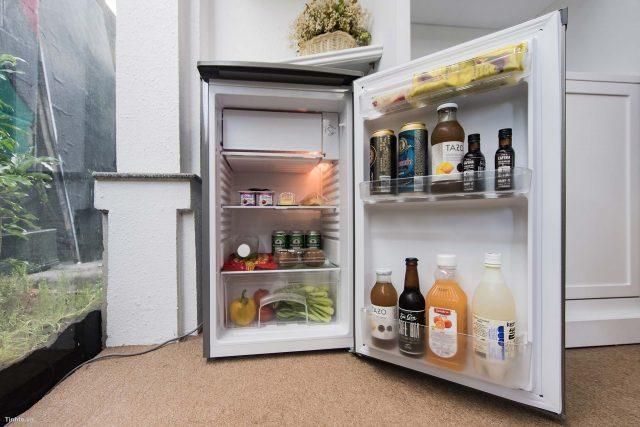 With the Midea brand, you have plenty of options when choosing a non-frost mini fridge. The popular model is HS-122SN, boasting a spacious 93-liter capacity suitable for 2-3 people. It features a convenient door design with upper and lower compartments. The machine is equipped with Econavi sensor technology for smooth operation and optimal temperature maintenance. Inverter power-saving function is also applied to minimize energy consumption.