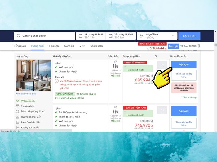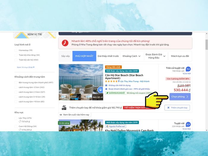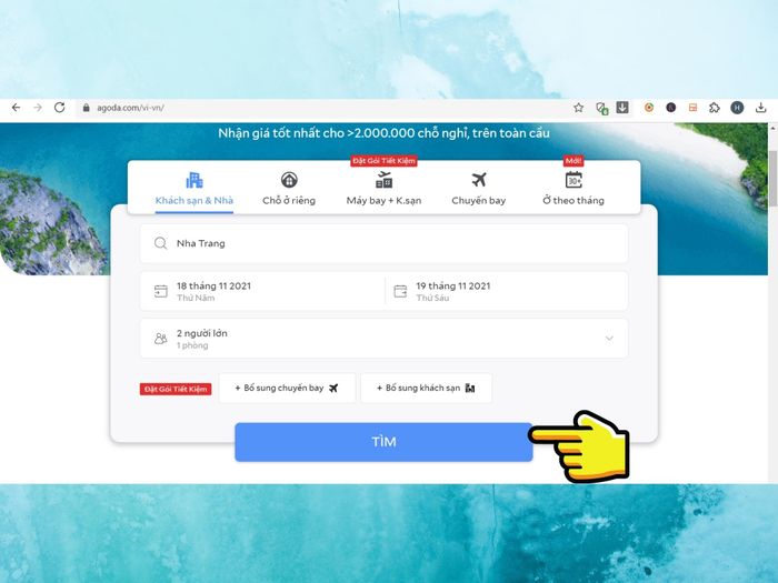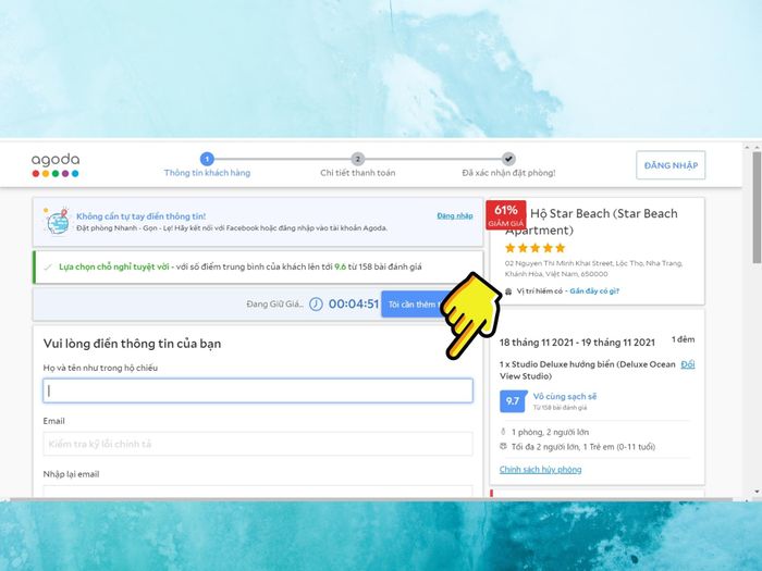 Similar to on mobile, here are the steps Mytour will guide you through for quick booking via the Agoda website.Step 1:link