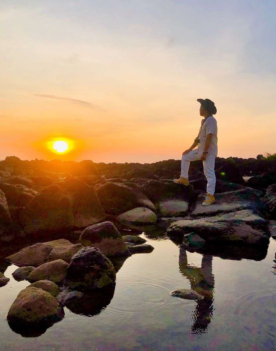 It's a remarkably beautiful place with unique black rocks, making it an ideal spot to admire the sunrise on the island. Locals share a tip: 'Welcoming the sunrise, watching the sun rise at Blind Man's Island will undoubtedly leave everyone impressed.' Hearing this adds motivation to wake up early the next morning. Indeed, this is an incredibly spectacular sunrise point as the sun rises from the sea, greeting the new day.