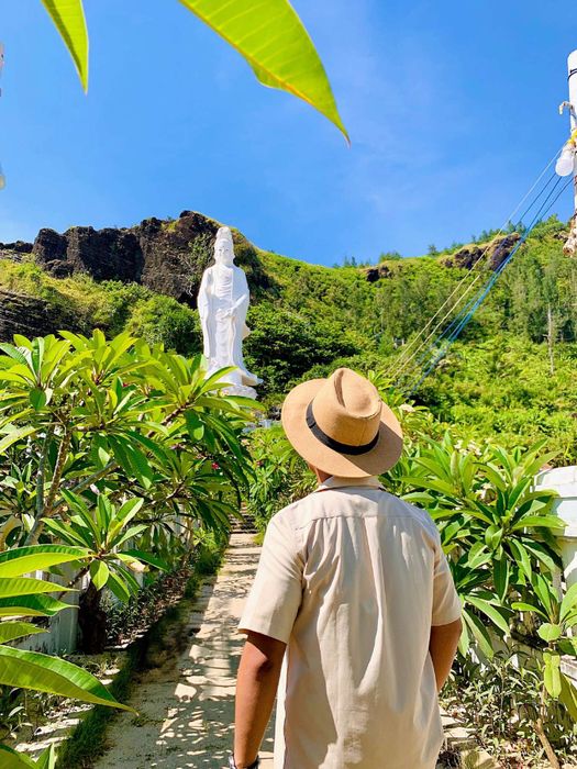 From Tò Vò Archway, it's a mere 200m stroll to Đục Pagoda, home to the largest statue of Quan The Am Bodhisattva on the island. A staircase leads to the mouth of the dormant volcano, providing a panoramic view of Ly Son Island. Nestled on the slopes of Giếng Tiền Mountain, the dormant volcano, the pagoda is believed to have housed Quan The Am, ensuring peace for the islanders, shielding them from natural disasters.