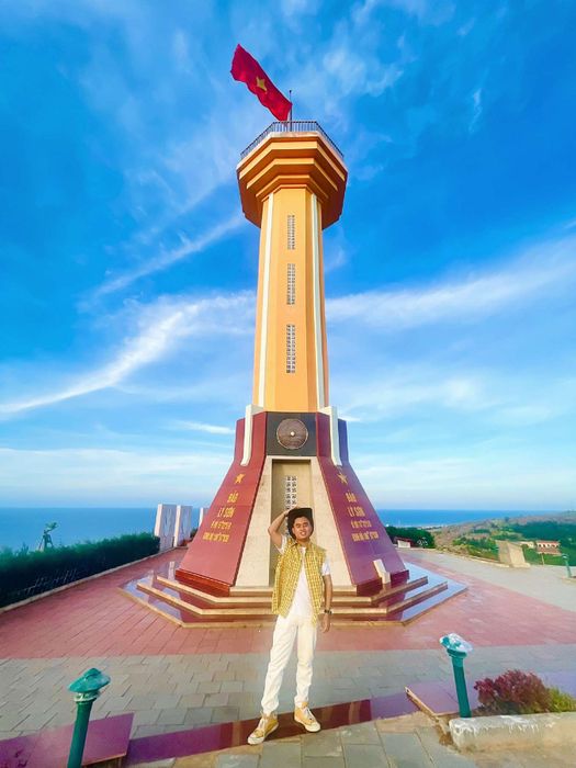 Alongside numerous sovereignty landmarks across the country, the Ly Son Flagpole stands tall to assert the nation's sovereignty, at the forefront of the island's ocean breeze. The National Flagpole structure in Ly Son district is located on Thới Lới mountain. The platform records the coordinates of the flagpole. The flagpole proudly marks Ly Son's territory atop Thới Lới, amidst the swirling island winds, a testament to Vietnam's pride.