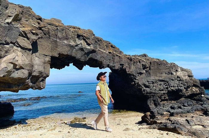 The Tò Vò Archway is a stone arch, approximately 2.5m tall, with a spectacular and entirely untouched form by human hands. According to geologists, the Tò Vò Archway is formed from volcanic basalt, the result of millions of years of volcanic activity here. Surrounding the Tò Vò Archway are shiny black basalt rocks, uniquely shaped, protruding from the crystal-clear waters of Ly Son Island.